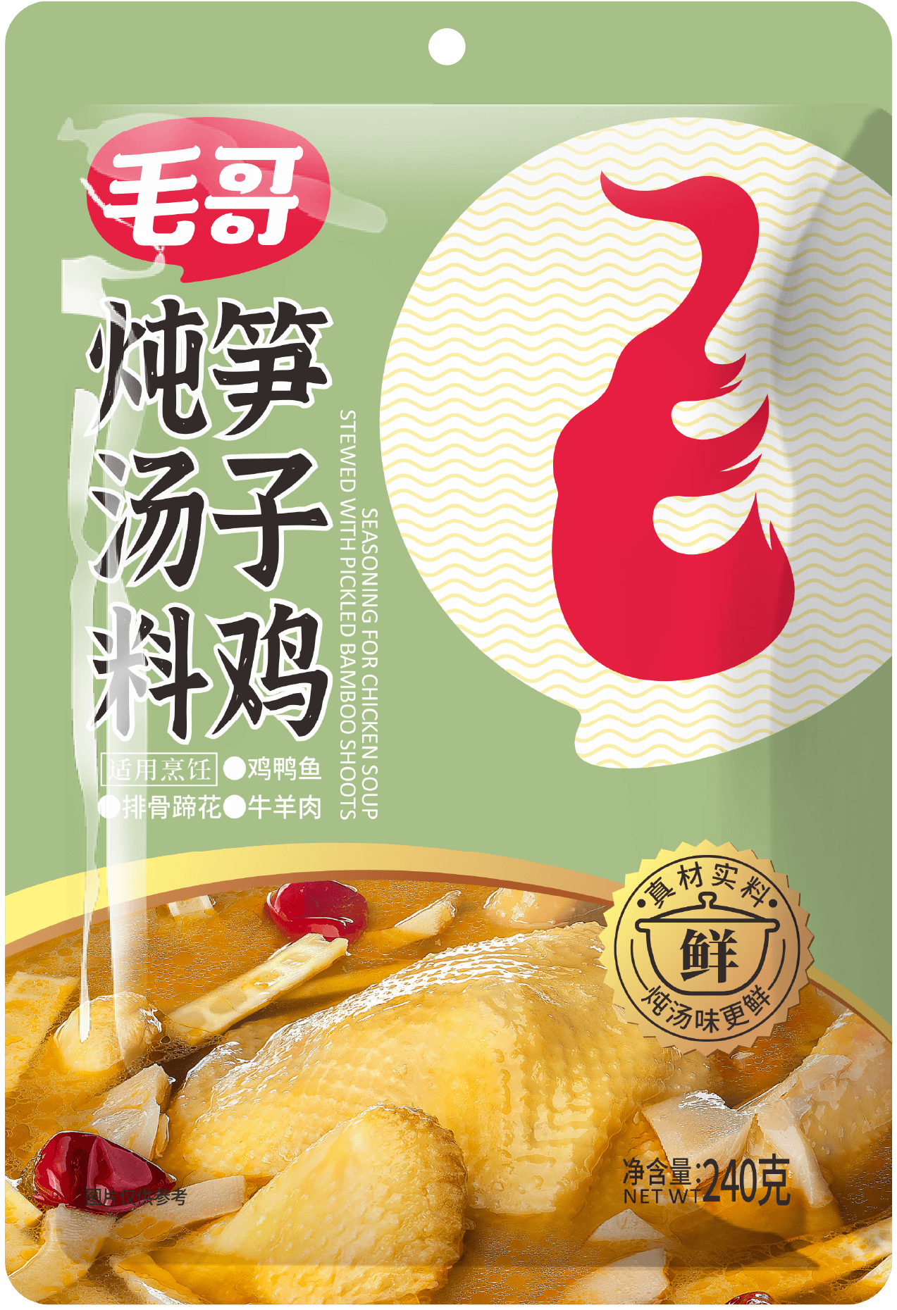 3、將食材和料包(干料包可適當(dāng)清洗)放入鍋中,加入3千克左右清水;