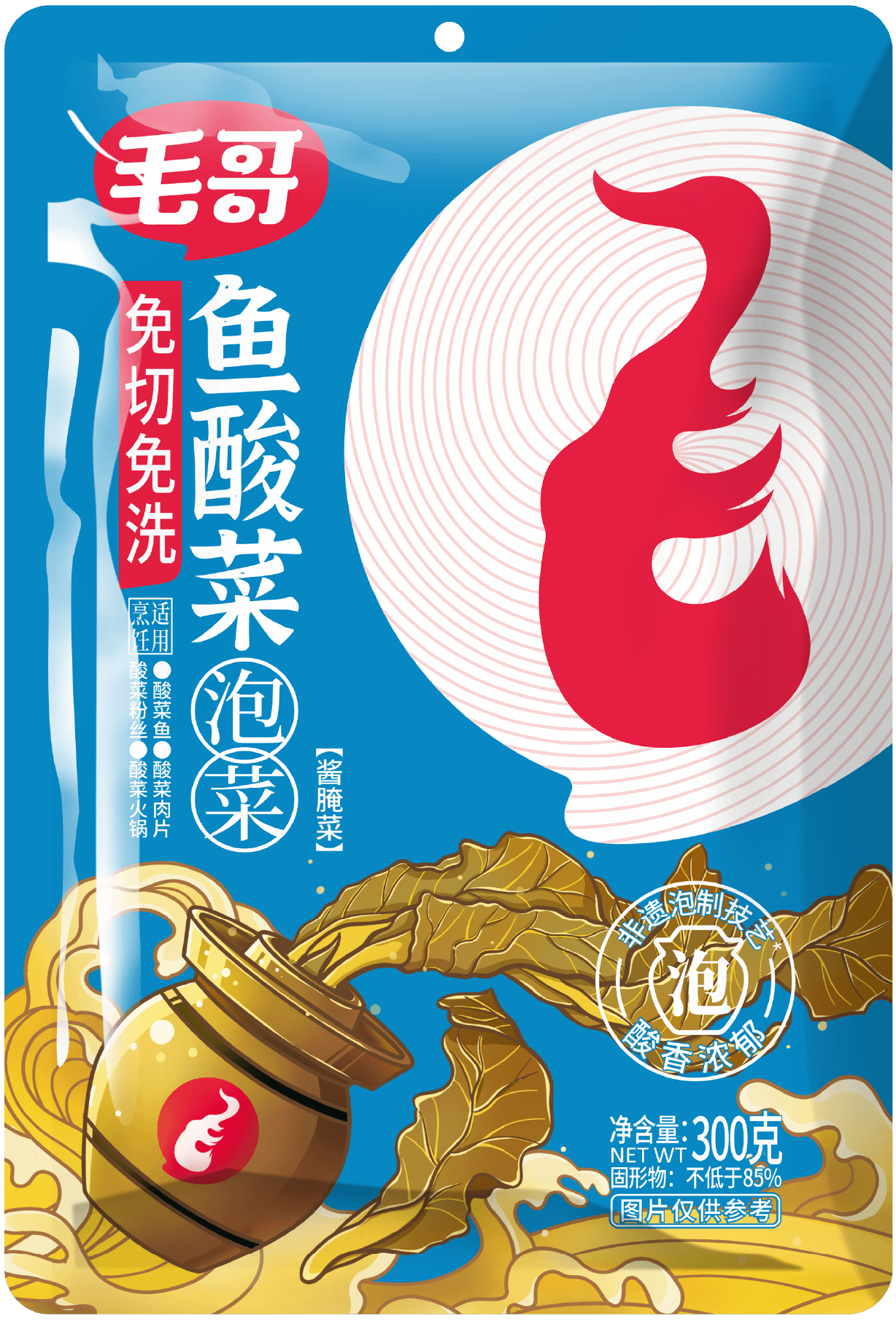 2、鍋中倒入1公斤水,再加入酸菜包,大火燒開,改小火熬制5分鐘左右,加入備好的魚片或肉片,煮熟即可;
